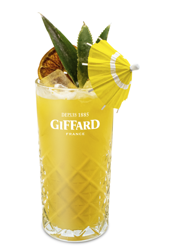 Lọc hỗn hợp vào ly chứa đầy đá.